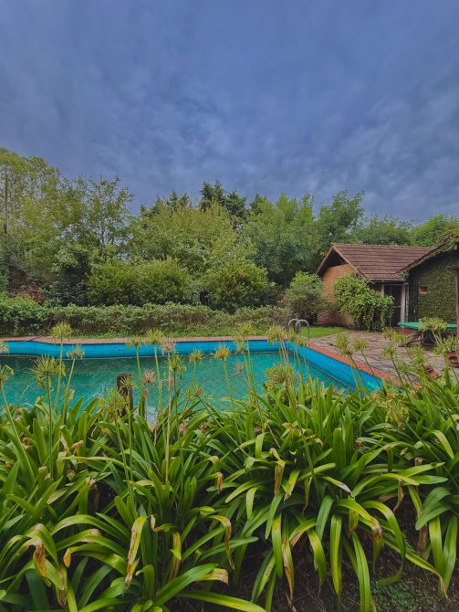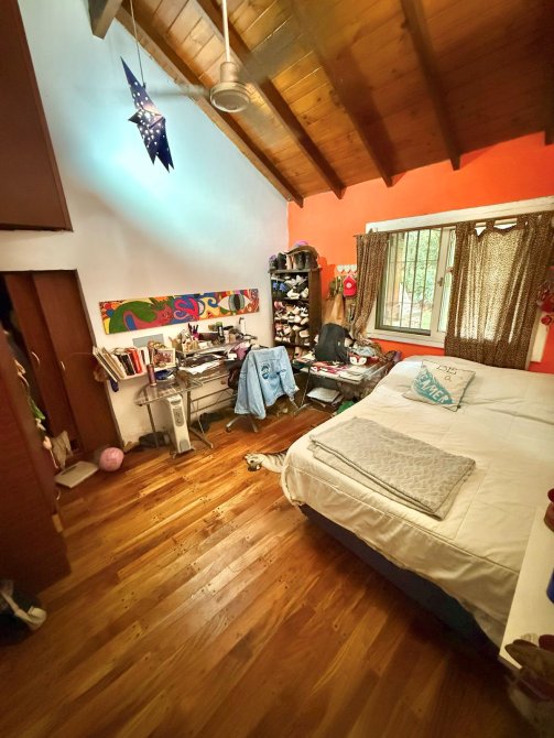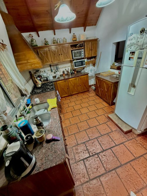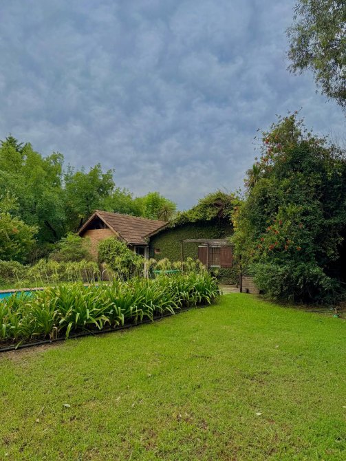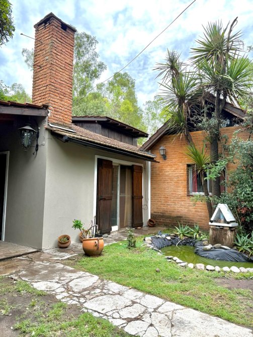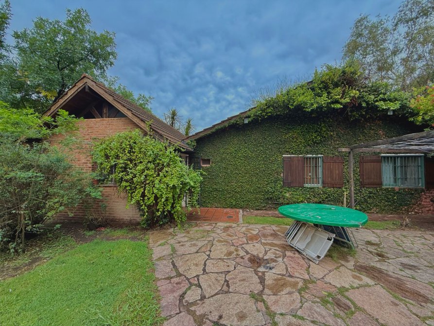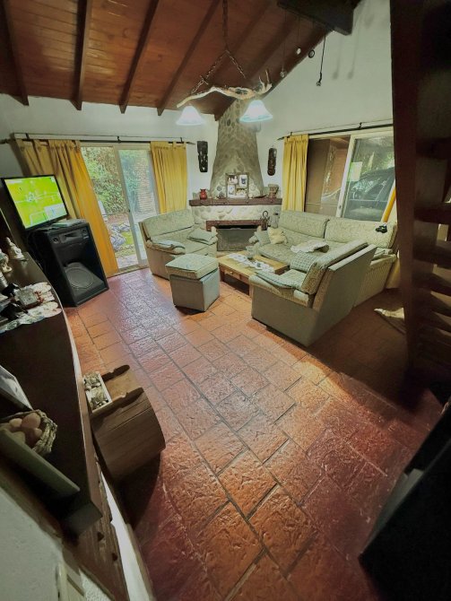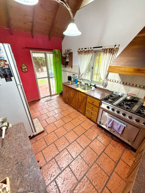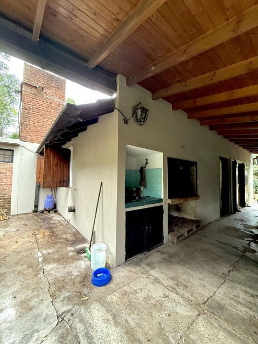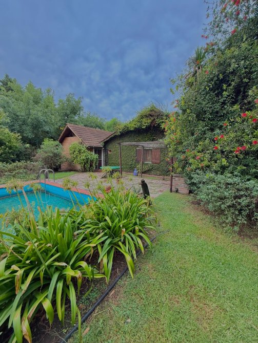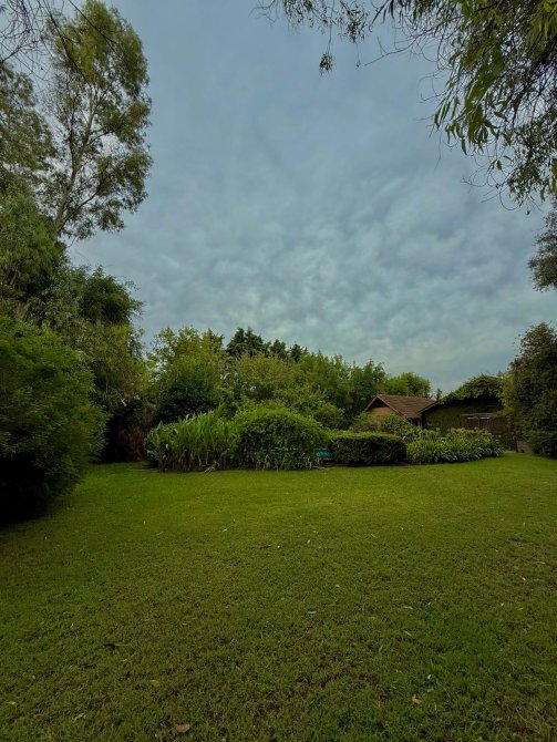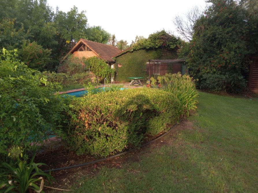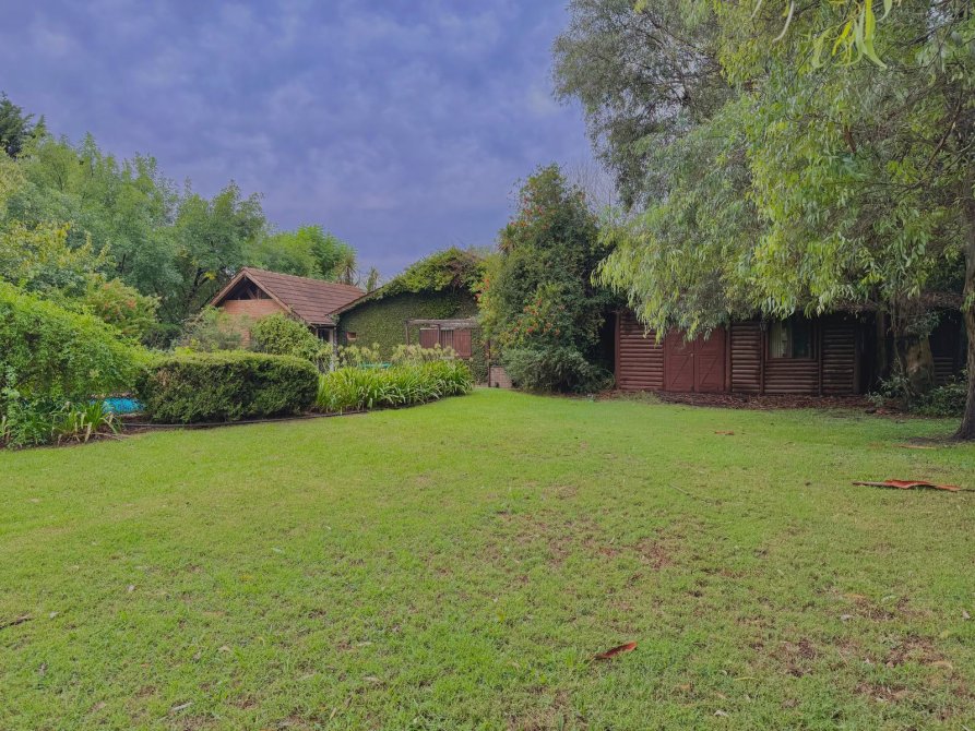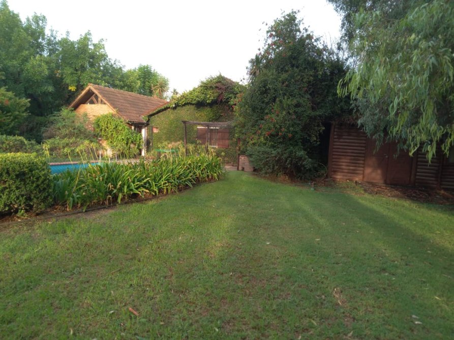 Además, detrás de la casa se encuentra un quincho de estilo rústico de 100m2 con paredes de troncos (para reacondicionar), equipado con aire acondicionado Split frío/calor, lavadero y baños de servicio.