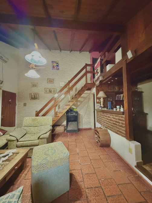 En la planta alta, un altillo que puede funcionar como habitación adicional o como espacio de trabajo. La propiedad también cuenta con una galería que sirve como cochera, una parrilla cubierta y un horno de barro.