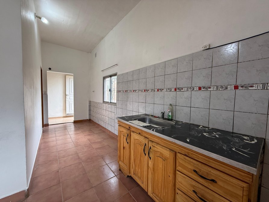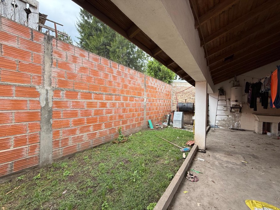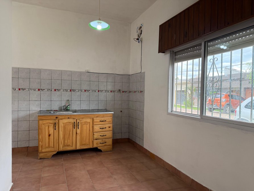 CASA 3 AMBIENTES: CONSTA DE LIVING, COCINA-COMEDOR CON MESADA, MUEBLE BAJO MESADA Y ALACENA, BAÑO COMPLETO Y DOS DORMITORIOS. AL FONDO GALERÍA SEMICUBIERTA.